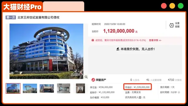2022年,王府世紀(jì)上了拍賣平臺,開始債權(quán)轉(zhuǎn)讓,估價15.39億的王府世紀(jì),11.2億就賣了,結(jié)果也是無人問津,一下成為了“爛資產(chǎn)”。
