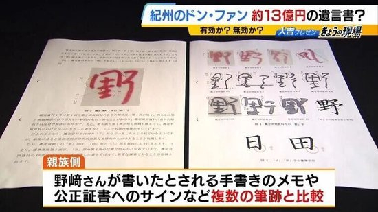 2024年6月,和歌山地方法院就遺囑有效性質(zhì)詢(xún)案做出一審判決:認(rèn)定遺囑上的筆跡與野崎本人無(wú)異,駁回親屬方的訴訟請(qǐng)求,判決遺囑有效。