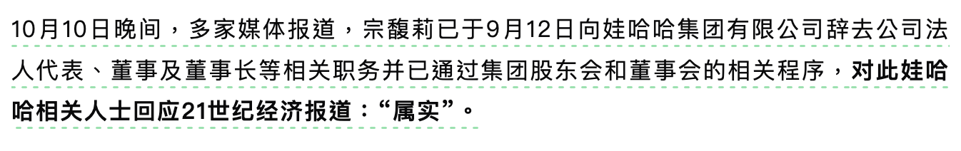 對(duì)此,娃哈哈回應(yīng)稱:屬實(shí)。