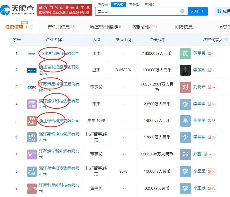 此外,李星星通過寧波梅山保稅港區(qū)昂步投資、杭州朗馬投資等37家企業(yè)構(gòu)建起投資矩陣,重點布局新能源與半導(dǎo)體領(lǐng)域,形成"實體產(chǎn)業(yè)+金融資本"的龐大商業(yè)版圖。