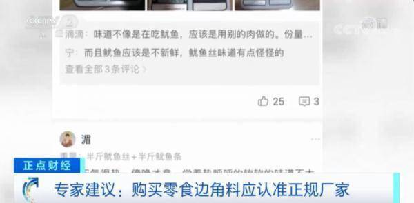 記者也在網(wǎng)上購買了一款零食的邊角料,開箱后發(fā)現(xiàn)并沒有明確的生產(chǎn)日期和生產(chǎn)廠家標(biāo)識(shí)。對(duì)此,專家提醒消費(fèi)者,選購零食邊角料時(shí)還是要認(rèn)清產(chǎn)品的品名、配料表以及生產(chǎn)日期等信息。