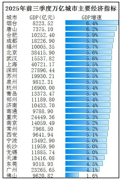 今年,唐山更是猛踩油門(mén),前三季度GDP增速高達(dá)6.2%,在所有萬(wàn)億城市中排名第二;具體到第三季度,更是在萬(wàn)億城市中遙遙領(lǐng)先。