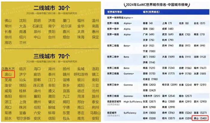 然而,這樣一座經(jīng)濟(jì)強(qiáng)市,在《新一線城市魅力排行榜》中,與棗莊、安陽(yáng)等城市位列同一等級(jí),成為唯一一個(gè)被列入三線的萬(wàn)億城市。要知道,就連同省GDP不足唐山一半的保定,都躋身二線城市。甚至,在最新的世界城市排名榜單中,唐山被排除在三線之外。