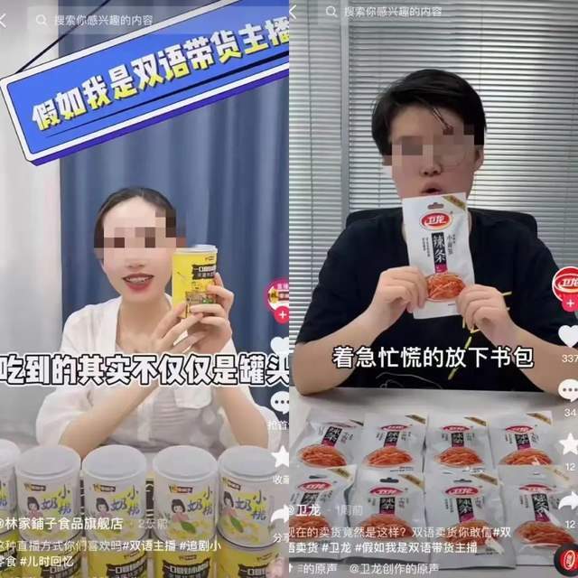 就連抖音平臺也不例外,通過設置#假如我是雙語帶貨主播#話題,吸引各路品牌和視頻博主紛紛模仿,這才有了衛(wèi)龍辣條的“吃一口衛(wèi)龍辣條,我相信你會回憶起童年,回憶起放學回家放下書包和小伙伴們出去玩”,以及林家鋪子的“吃一口林家鋪子,似曾相識的那份重回童年的感受”。