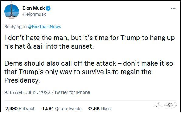 當(dāng)然,我看到有美國(guó)人這樣分析:特朗普以前是推特之王,雖然現(xiàn)在已經(jīng)是一別兩寬,但看到馬斯克現(xiàn)在“調(diào)戲”推特,特朗普難免有點(diǎn)失落,“就像一個(gè)充滿嫉妒的前任一樣”……