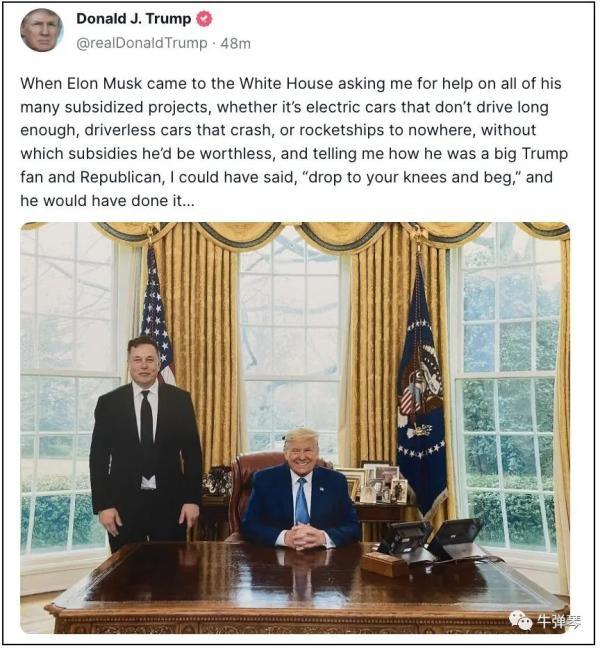 更絕的,特朗普還描繪了一個(gè)很有畫(huà)面感的場(chǎng)景:如果當(dāng)時(shí)他要求馬斯克下跪乞求,馬斯克肯定也會(huì)這么做。
