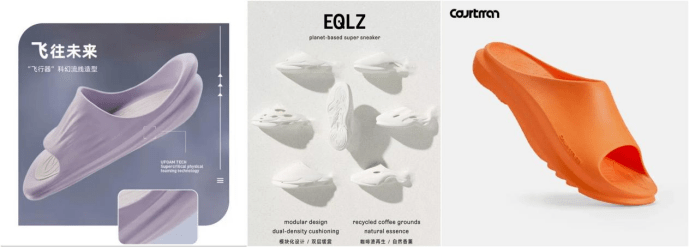 在造型上模仿Yeezy的未來感設(shè)計,在產(chǎn)品上采用與匹克相似的黑科技策略,內(nèi)卷的拖鞋市場從此形成。