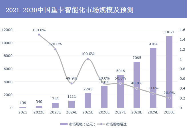 而卡車和干線配送市場,早就超萬億了,據(jù)國家統(tǒng)計(jì)局?jǐn)?shù)據(jù)顯示,2020年中國社會公路貨運(yùn)物流總費(fèi)用超過11萬億元。其中,中重卡承擔(dān)的干線運(yùn)輸費(fèi)用占整個公路貨運(yùn)的82%。
