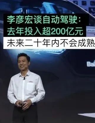 以百度為例,李彥宏在2021年表示“百度去年投入200億研發(fā)自動駕駛”,并且,未來仍需要10到20年的長期投入。