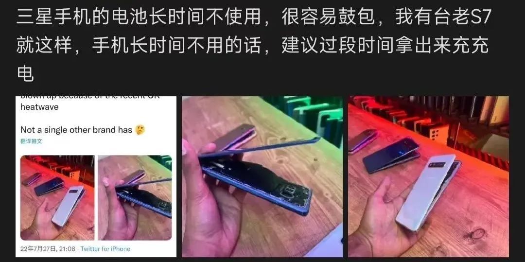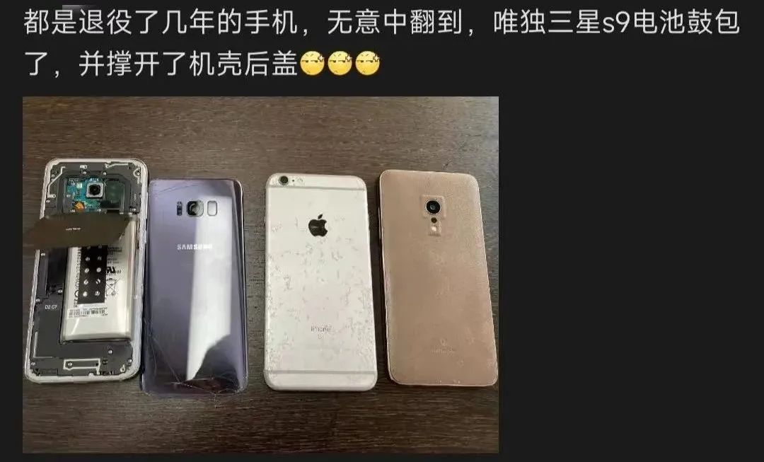 而意料之外的是,在抽屜里長期儲存的那些三星手機,都沒有出現(xiàn)那位 UP 主描述中的鼓包現(xiàn)象。