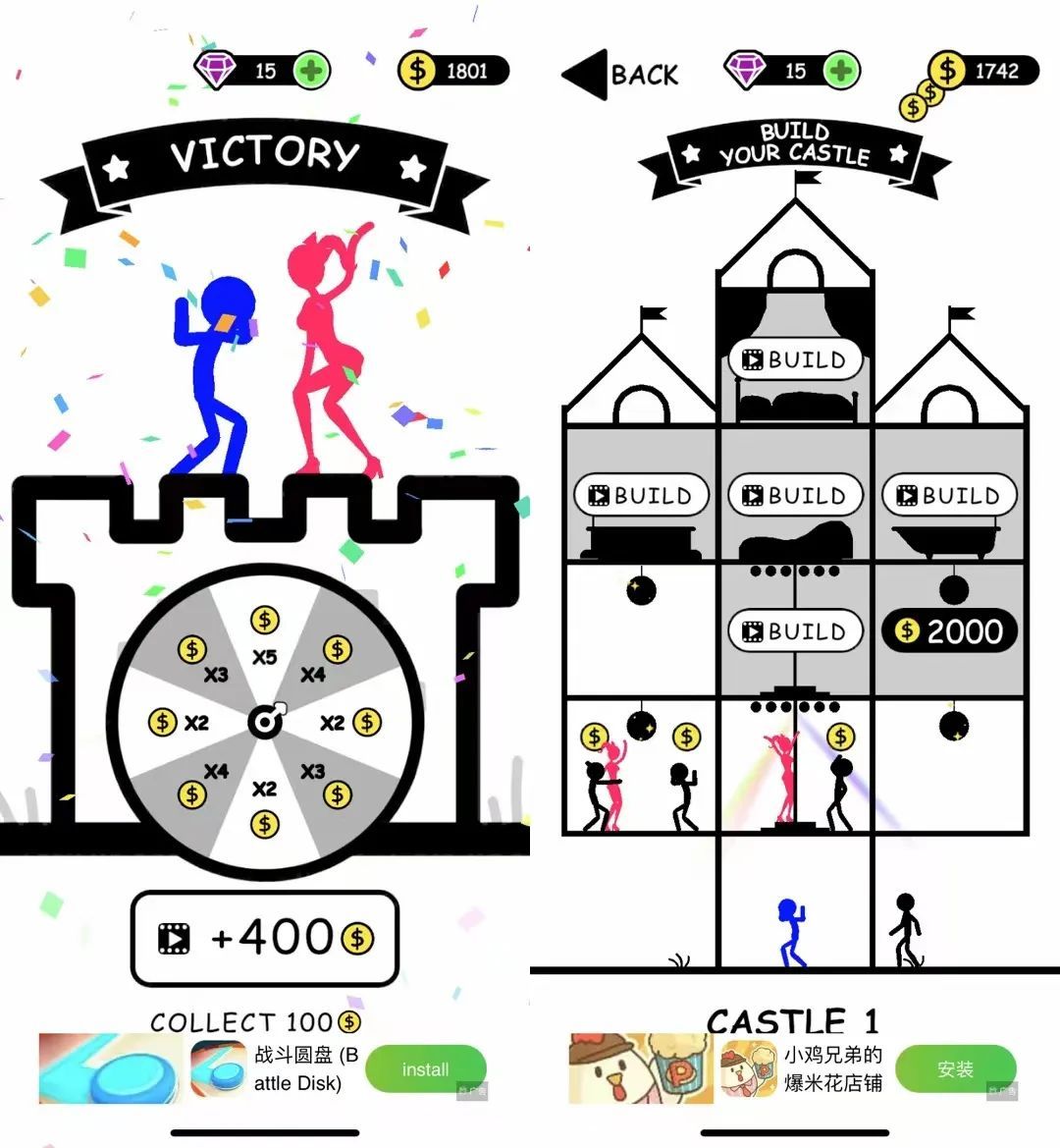 「Stick War」除了爬塔之外,還添加了模擬經(jīng)營副模式“My Castle(我的城堡)”。簡而言之就是玩家可以將主模式每一關(guān)完成后贏得的金幣,用來購買屬于自己的“城堡”。為玩家提供一個(gè)消費(fèi)金幣的場所。