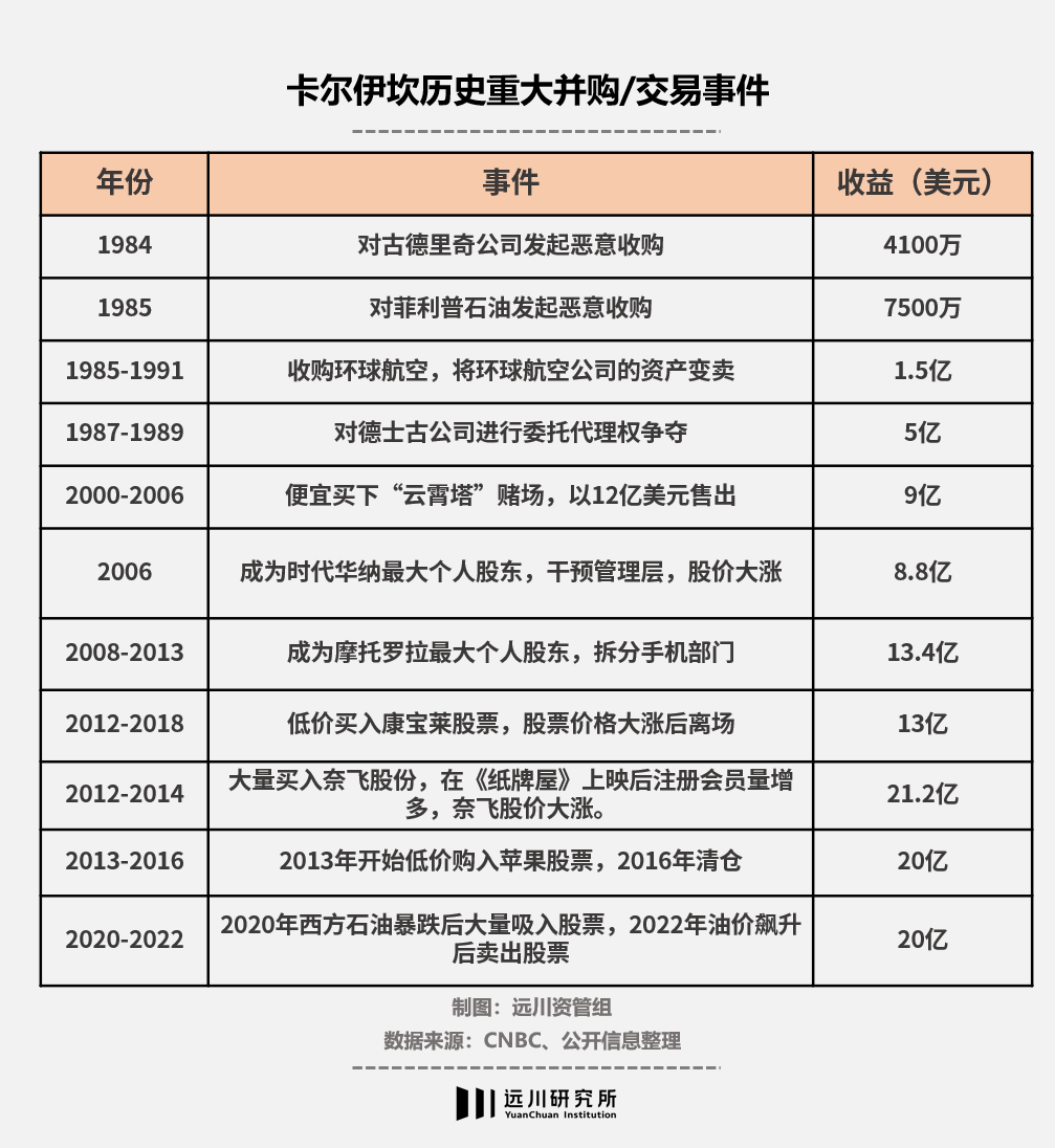 從上個世紀70年代開始,他就在泰潘烤箱上小試牛刀,此后整個職業(yè)生涯里,都在與管理層的斗爭中度過。他吞下過環(huán)球航空,吃掉過德士古石油,更是如今這個互聯(lián)網時代里人盡皆知的「華爾街狼王」——漫威、雅虎、eBay、奈飛、蘋果統(tǒng)統(tǒng)都曾是他的獵物?!稌r代周刊》把他視為宇宙的主宰,國內稱其為姚振華的祖師爺。