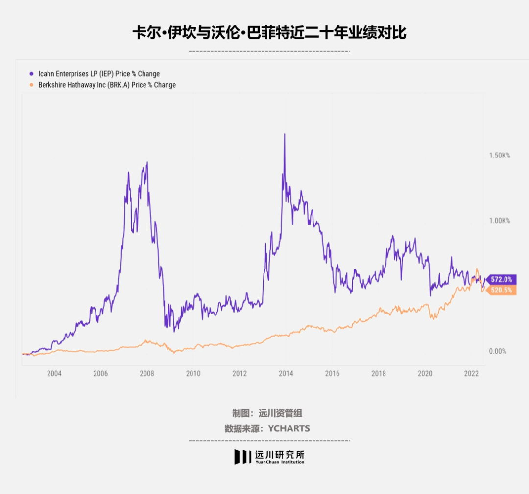 2014年,伊坎在《巴倫周刊》抨擊巴菲特對可口可樂增發(fā)股票毫無作為;2016年,伊坎在巴菲特愛上蘋果前清空了蘋果,今年又在巴菲特投入數(shù)十億增持之際清倉了西方石油。他一會兒暗諷巴菲特把可口可樂董事會當作大學生聯(lián)誼會[4],一會兒又稱巴菲特西方石油的交易就像從嬰兒手里拿走糖果。