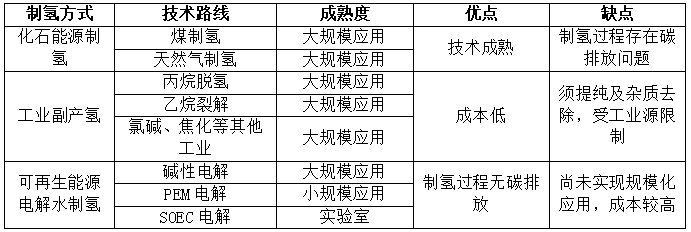 主流制氫方式對比 資料來源:平安證券