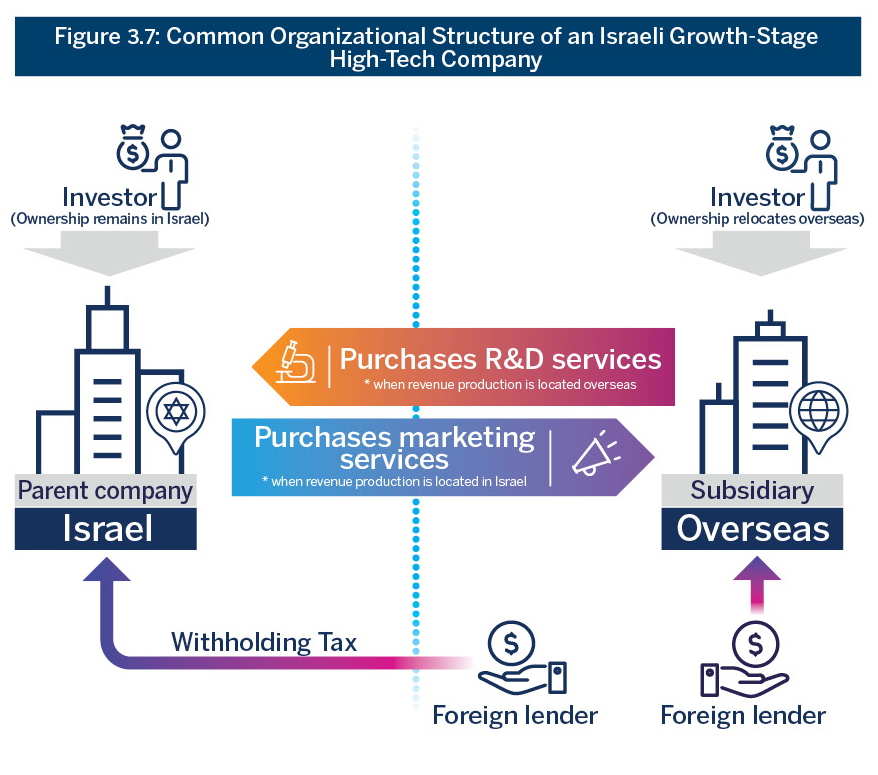 海外籌資的方式之一,就是在國外成立子公司。在以色列,大多數(shù)處于成長階段的高科技公司都會(huì)向海外擴(kuò)張。其結(jié)果是:這些高科技項(xiàng)目的銷售、生產(chǎn)、技術(shù)支持等最終會(huì)轉(zhuǎn)移到國外,而以色列總部就成了一家“國外公司”的研發(fā)基地。關(guān)于以色列模式的弊端,我們會(huì)在本文最后一節(jié)詳述。