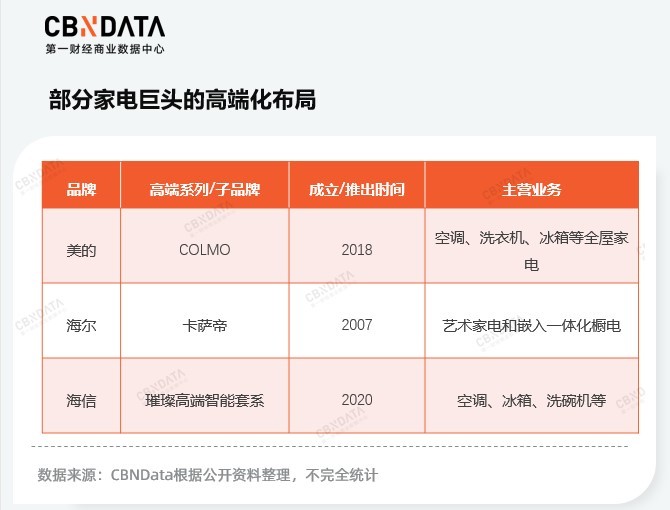 在國(guó)內(nèi)市場(chǎng)飽和,消費(fèi)需求升級(jí)的趨勢(shì)下,向上轉(zhuǎn)型,向外擴(kuò)展,成為家電巨頭們尋找的第三條路,目前為止,美的、海爾、格力都形成了各自的“城池堡壘”,美的有收購(gòu)的庫(kù)卡和高端子品牌COLMO,海爾有卡薩帝,格力則由專(zhuān)門(mén)的團(tuán)隊(duì)負(fù)責(zé)高端產(chǎn)品研發(fā)和運(yùn)營(yíng)。