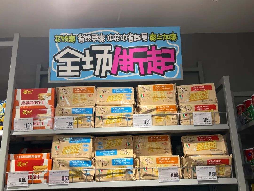在早期的好特賣和嗨特購里,臨期食品撐起了折扣店“低價(jià)好物”的邏輯。一些大品牌動(dòng)銷相對(duì)差的產(chǎn)品或是尚未打開銷售的新口味、過時(shí)單品,以及離保質(zhì)期還有3-6個(gè)月的食品,都能夠以超低價(jià)進(jìn)入折扣店。