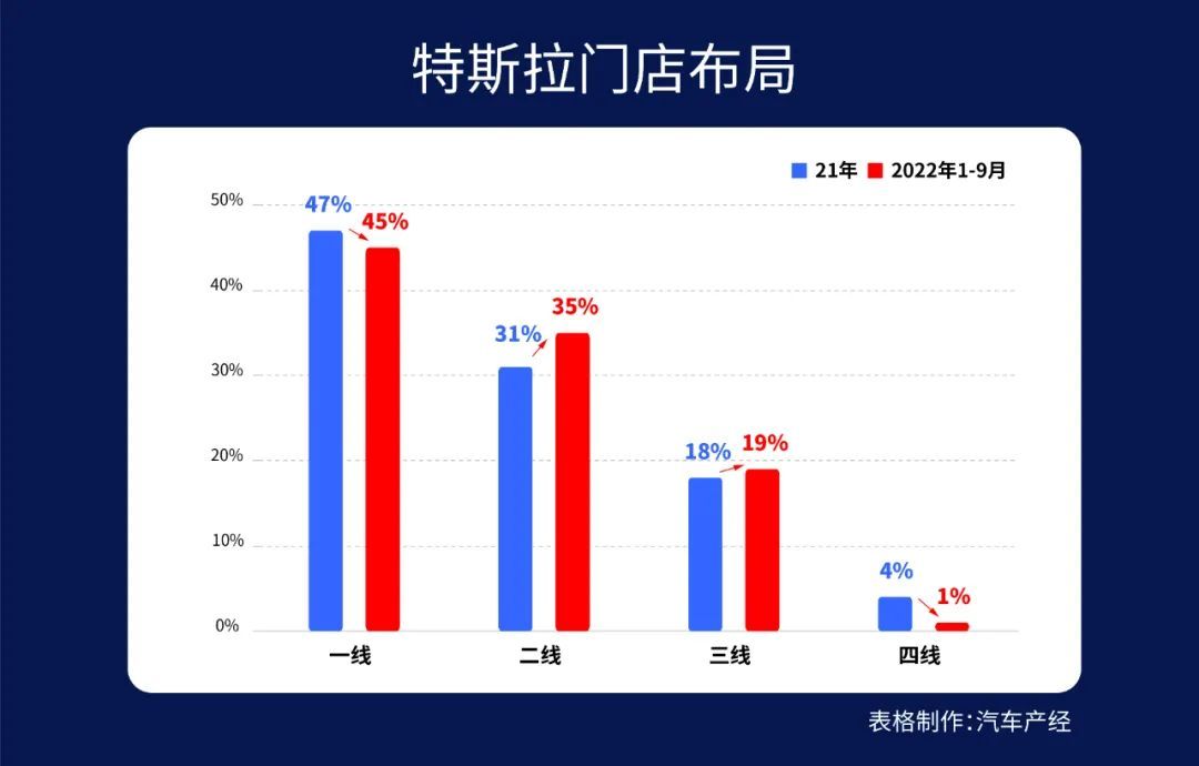 越是往下走,直營門店的效率就越低,今年特斯拉已經(jīng)關(guān)閉了多家銷量不佳的四線城市門店。