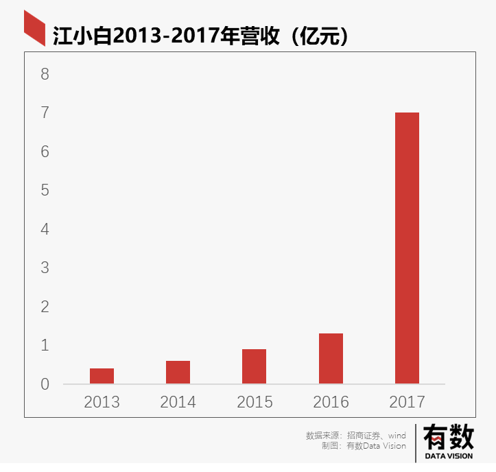 在2013年-2017年間,江小白營(yíng)收飛速增長(zhǎng),單從增速來(lái)看,連茅臺(tái)也拍馬難及。