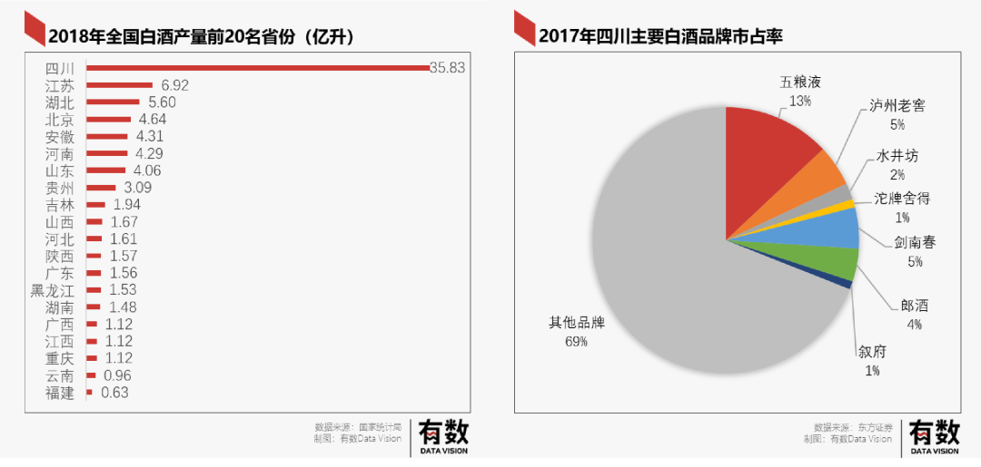 而在江小白的產(chǎn)地四川,白酒產(chǎn)量一枝獨(dú)秀吊打全國(guó),本土白酒品牌百花齊放,競(jìng)爭(zhēng)本就激烈。又因?yàn)槌叨似放浦?,五糧液和瀘州老窖都在此地,想要謀求本土競(jìng)爭(zhēng)難上加難。