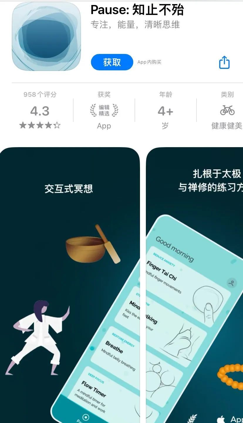 拿過時代周刊年度十佳和App Store編輯部推薦的交互式冥想APP。有正念呼吸、心流計時器、指尖太極等多種冥想活動選擇。伴隨背景白噪音和畫面的流動,放松身心,進入狀態(tài)。畫面非常簡潔優(yōu)美,做完后也會有數(shù)據(jù)分析和統(tǒng)計。對于快速集中注意力和減輕壓力很有用。