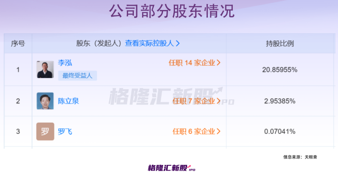 據(jù)天眼查,李泓持股比例在20%左右,是天目先導(dǎo)的大股東,陳立泉和羅飛均持有公司股份,羅飛是公司總經(jīng)理。