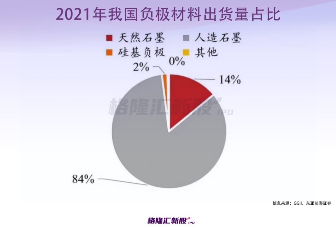 從出貨量來看,2021年,人造石墨和天然石墨分別占我國負極材料出貨量的84%、14%,而硅基負極占比很小??梢娔壳柏摌O材料中主流應(yīng)用的是石墨類材料,硅基負極材料的出貨量占比明顯偏低。