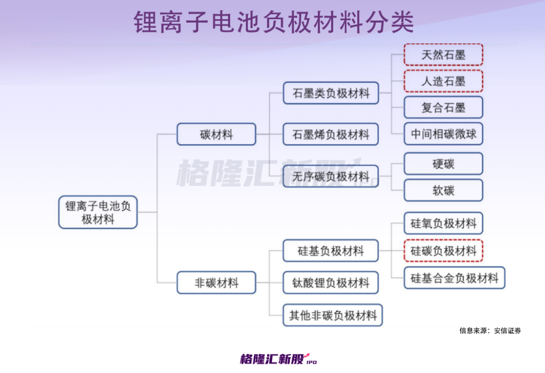 氧化亞硅和納米硅是目前實現(xiàn)規(guī)?;?a href="http://www.slzrb.cn/">商業(yè)應(yīng)用的主要硅基負極產(chǎn)品,且一般均與石墨負極材料摻雜使用。而硅基負極材料是非碳材料中的一種。鋰電池負極材料除了非碳材料外,還包括以天然石墨和人造石墨為主的碳材料。