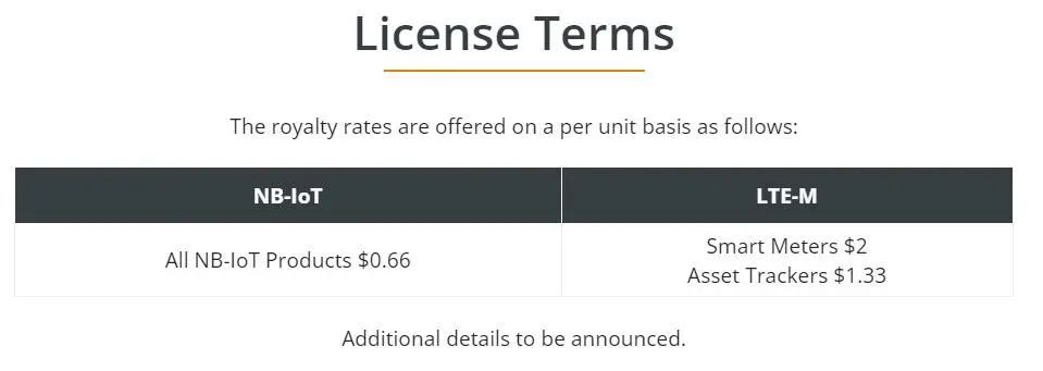 當然,這還只是SISVEL公司一家的專利池計劃,后面還有多少專利擁有者在摩拳擦掌不得而知,因為僅從SISVLE公司的公告就能看出,該專利池仍然會向持有相關(guān)專利的新參與者開放,也就意味著起碼這一家專利池的“專利費收割者”還會越來越多,而且0.66美元也不一定會是每個NB-IoT終端商最終的應(yīng)支付價格。