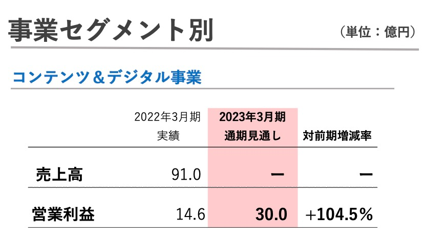 在【內(nèi)容與數(shù)碼事業(yè)】這一業(yè)務(wù)板塊中,圓谷打算順著“奧特曼”品牌認(rèn)知度提高這一趨勢緊追而上。圓谷制作公司預(yù)計(jì)這一業(yè)務(wù)板塊的全年?duì)I業(yè)利潤將達(dá)到30億日元,環(huán)比增長104.5%。
