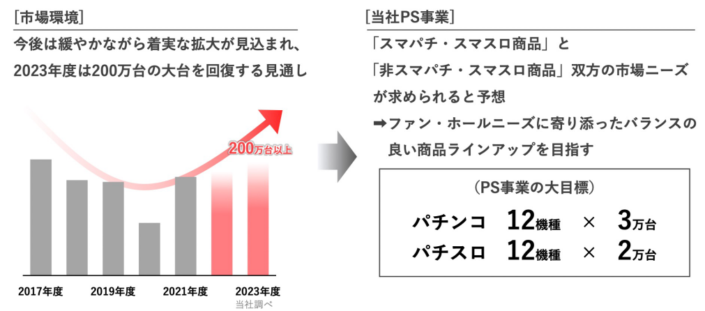 在【PS事業(yè)】這一業(yè)務(wù)板塊中,圓谷仍打算繼續(xù)從老虎機(jī)和彈子球產(chǎn)品入手,預(yù)計(jì)這一業(yè)務(wù)板塊的全年?duì)I業(yè)利潤將達(dá)到30億日元,環(huán)比增長74.1%。