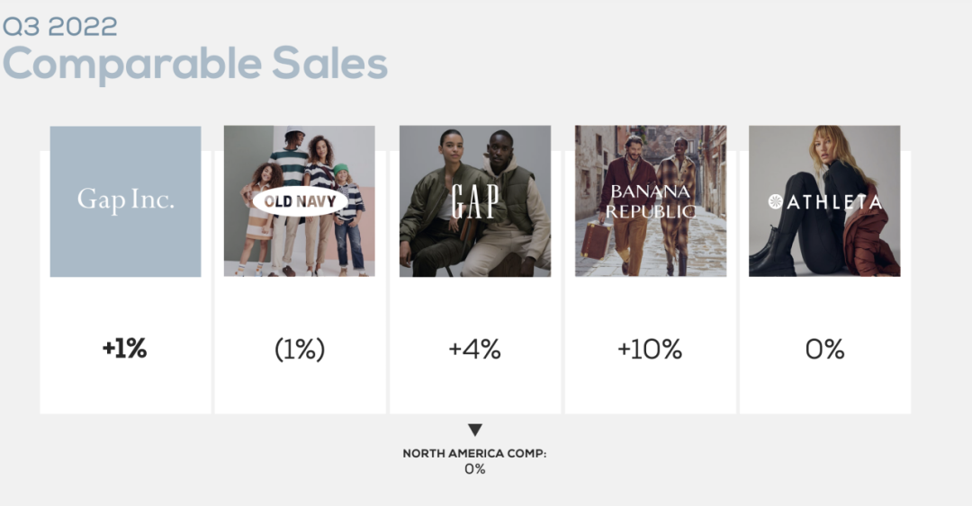 美東時(shí)間11月17日,GAP(GPS.US)發(fā)布了截至2022年10月29日的第三季度業(yè)績(jī)。據(jù)財(cái)報(bào)信息,本季度GAP的凈銷售額為40.4億美元,同比增長(zhǎng)2%,可比銷售額同比增長(zhǎng)1%。第三季度,公司在線銷售額同比去年增長(zhǎng)了5%,高于門(mén)店銷售額1%的增速。