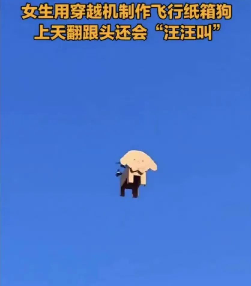 最牛的還是技術(shù)黨,電動(dòng)平衡車、無人機(jī),他們用現(xiàn)代科技的力量給養(yǎng)狗人們上了一課,飛天小狗、漂移小狗,突破傳統(tǒng)遛狗的限制,上天入地,無所不能,這才是現(xiàn)代化紙箱狗的靈魂所在。