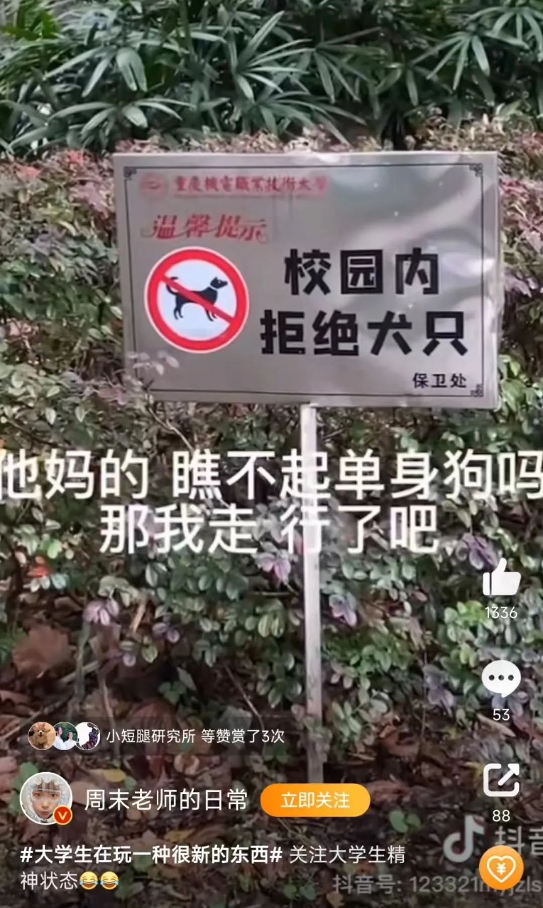 尤其是遛狗和曬寵,更是重中之重,有紙箱狗卻不遛不曬,如錦衣夜行。這也是為什么紙箱狗能在社交平臺(tái)上迅速走紅的重要原因,年輕人就是要?dú)馐?,于是“有狗了,不想跟沒狗的人說話”也成為了養(yǎng)狗人中流傳的熱梗,沒有什么比在禁養(yǎng)寵物的大學(xué)里擁有一只寵物更令人驕傲的了。
