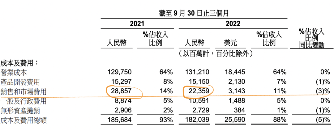 但近兩年,隨著消費(fèi)疲軟,阿里最大的現(xiàn)金?!獊?lái)自淘寶天貓的客戶管理費(fèi)(廣告費(fèi)和傭金等)在總營(yíng)收的占比從此前的60%逐漸降到現(xiàn)在的30%多,瓶頸漸顯。2022財(cái)年(截至自然年2022年Q1),阿里核心電商業(yè)務(wù)GMV首次負(fù)增長(zhǎng),用戶增長(zhǎng)也摸到天花板,營(yíng)銷的ROI開始下降。阿里不得不捂緊花錢的口袋。