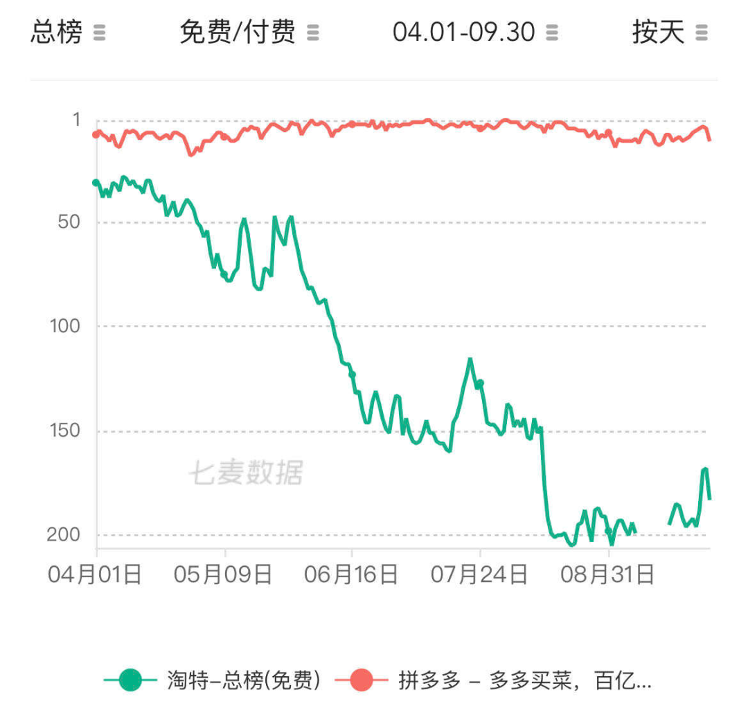 不過(guò),20社查詢第三方數(shù)據(jù)平臺(tái)看到,淘特的App Store排名過(guò)去兩個(gè)季度明顯下降,應(yīng)該與補(bǔ)貼退坡有關(guān)。
