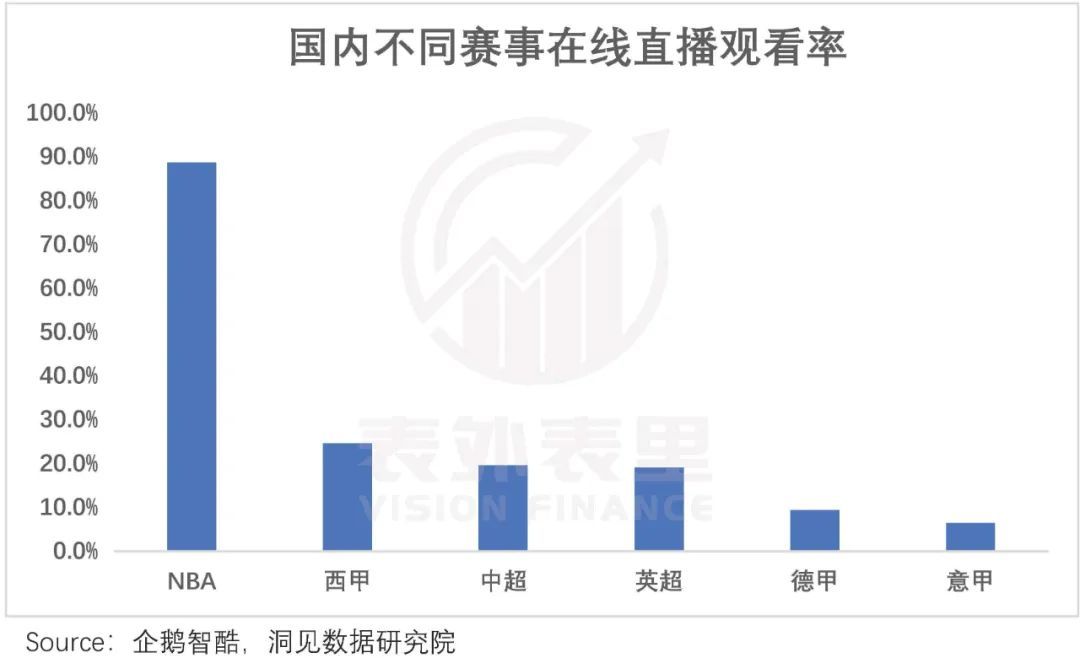 以關(guān)注度最高的NBA賽事為例,直播時(shí)候觀看率接近90%。