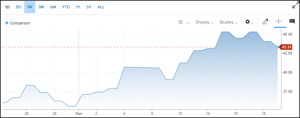 據(jù)美國(guó)股票、期權(quán)信息網(wǎng)站Market Chameleon,11月18日,掛鉤追蹤港交所中國(guó)大盤股的美國(guó)上市ETF——iShares China Large-Cap ETF (FXI)的看漲期權(quán)未平倉(cāng)合約達(dá)到歷史新高444.78萬(wàn)份,未平倉(cāng)的看跌期權(quán)合約為172.44萬(wàn)份,未平倉(cāng)看漲期權(quán)的合約數(shù)約為看跌期權(quán)合約的1.6倍。