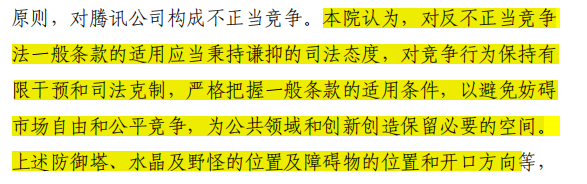 這些知識產(chǎn)權(quán)是屬于全球公有領(lǐng)域,也是MOBA游戲創(chuàng)作的基礎(chǔ),在對比抄襲時應(yīng)當排除。廣州知識產(chǎn)權(quán)法院在該案中也提到,“不正當競爭的判定要保持有限干預和司法克制,以避免妨礙市場自由和公平競爭,為公共領(lǐng)域和創(chuàng)新創(chuàng)造保留必要的空間。”