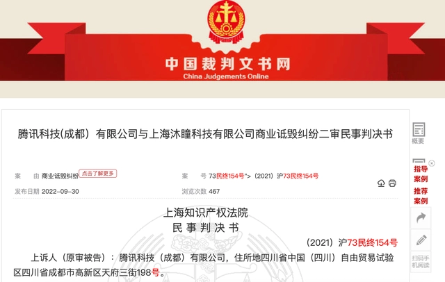 2022年9月,騰訊敗訴給沐瞳,法院判決 騰訊的行為構(gòu)成商業(yè)詆毀,并責令騰訊賠償沐瞳人民幣22萬元。