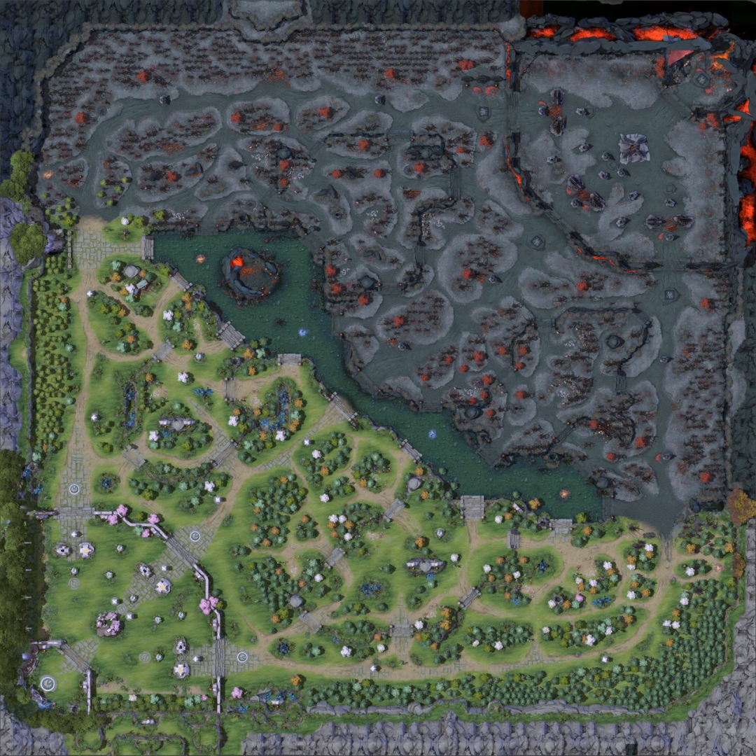 即MOBA游戲的規(guī)則和地圖設(shè)定有相當一部分是在類DOTA里游戲里普遍應(yīng)用的,應(yīng)當屬于公有領(lǐng)域或通用元素設(shè)計:比如“三條路,中路與河道交叉”的地圖,比如五人對戰(zhàn)以推塔獲勝的規(guī)則和玩法,再比如表示抗陣營的紅色與藍色、水晶防御塔、野區(qū)的標識,圓框頭像和箭頭等基礎(chǔ)元素,以及這些游戲元素的數(shù)量、位置等方面的布局。