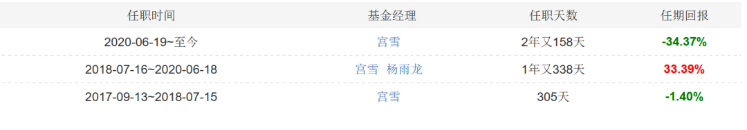 為了改變基金業(yè)績(jī),國(guó)金基金給基金增聘了楊雨龍為基金經(jīng)理,與宮雪共同管理。在二人共同管理期間,該基金取得了33.39%的回報(bào)。2020年6月18日,楊雨龍離職,宮雪又開始獨(dú)自管理該基金。在宮雪獨(dú)自管理的2年多期間,該基金收益又是負(fù)的,回報(bào)是-34.37%。