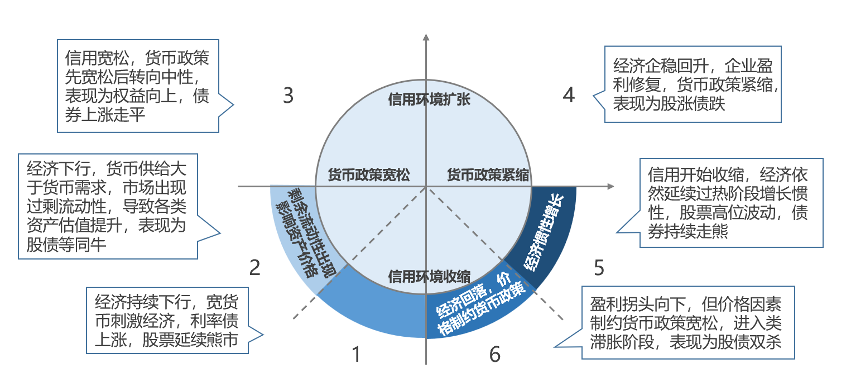 戰(zhàn)術(shù)資產(chǎn)配置上,他主要基于華夏基金FOF團(tuán)隊(duì)的“五因素六象限模型”,通過對貨幣、信用、流動性、盈利/估值、情緒五大因素進(jìn)行判斷,從而動態(tài)地對大類資產(chǎn)配置的比例進(jìn)行調(diào)整。