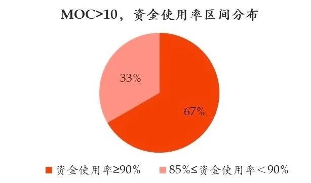 MOC超過10倍的樣本基金中,67%的基金的資金使用率超過90%
