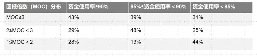 資金使用率越高,回報倍數(shù)(MOC)占比越高