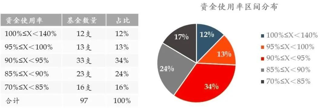樣本基金中,58%的基金的資金使用率位于85-95%區(qū)間