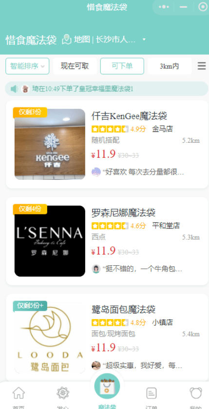 據(jù)了解,“惜食魔法袋”是我國第一個專注反食品浪費的小程序,于2021年正式上線,目前已入駐到北京、南京、上海、廣州、深圳、杭州、長沙、成都等多個城市。