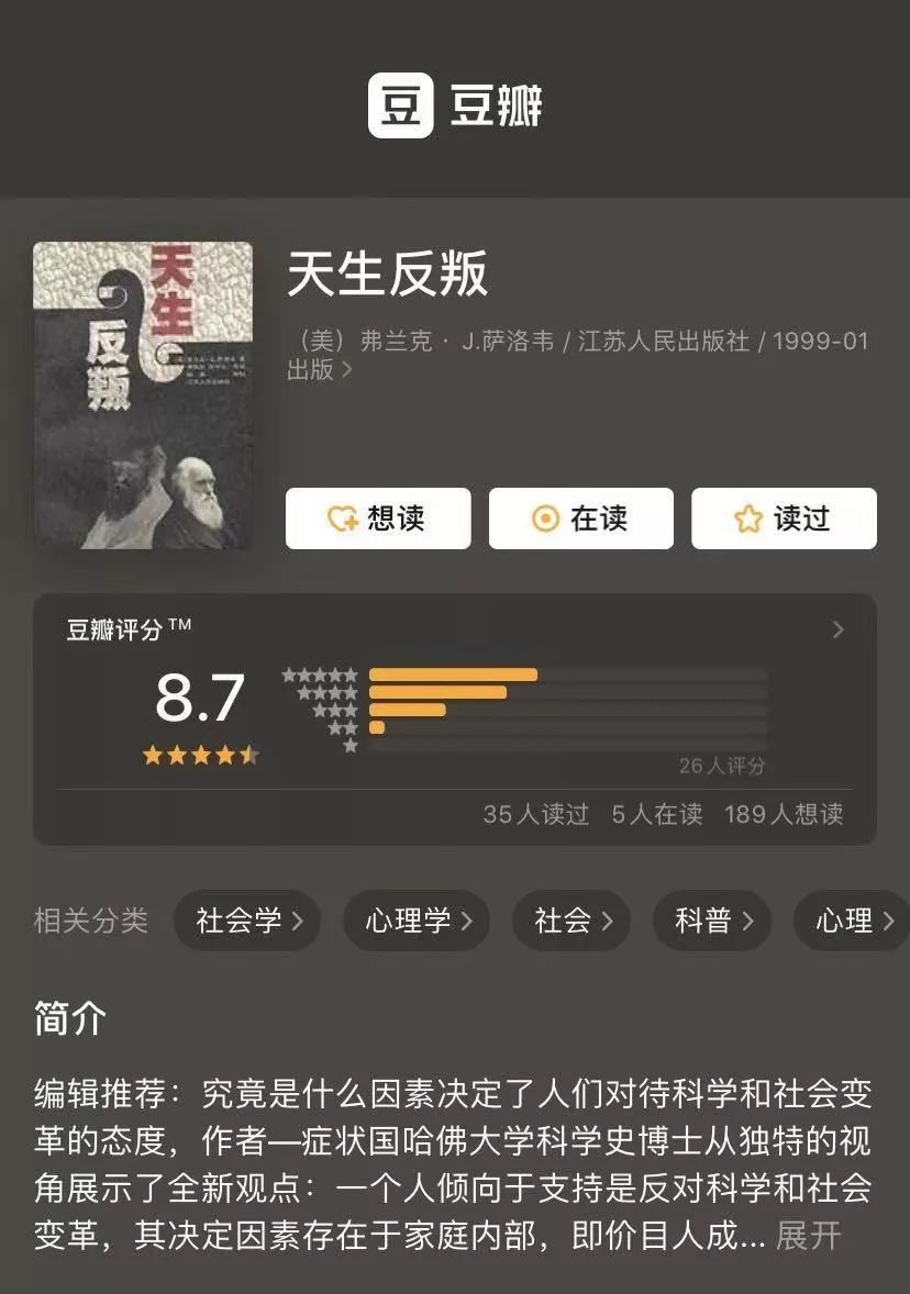 書里說這種順從和叛逆只是針對(duì)父母,而不是針對(duì)社會(huì)。比如父母是很叛逆社會(huì),長子可能會(huì)跟隨父母,成為社會(huì)革命者。而次子反倒會(huì)順從社會(huì)主流價(jià)值觀。