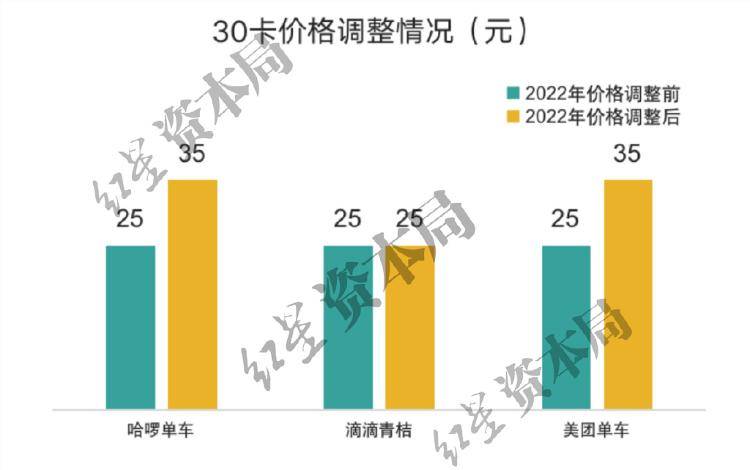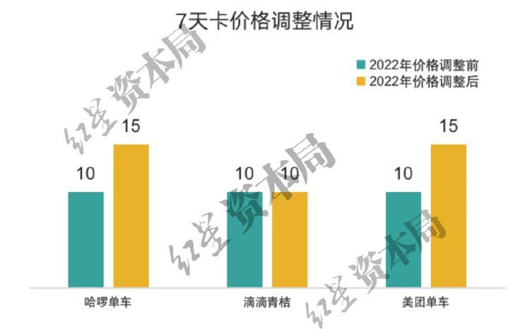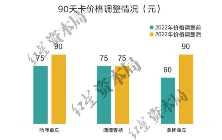 2022年1月,哈啰單車宣布將騎行套餐7天卡10元漲到15元,30天卡25元漲到35元,90天卡75元漲到90元。