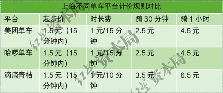 以上海為例,目前美團單車與哈啰單車收費規(guī)則都是前15分鐘1.5元,之后每15分鐘1元,相當(dāng)于1小時4.5元。而滴滴青桔(經(jīng)典版)收費標(biāo)準(zhǔn)為前15分鐘1.5元,此后每10分鐘收費1元,相當(dāng)于騎行1小時的收費為6.5元。